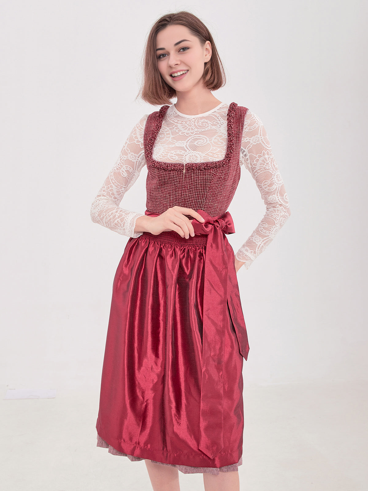 Damen Rot Gerader Ausschnitt Dirndl Morina