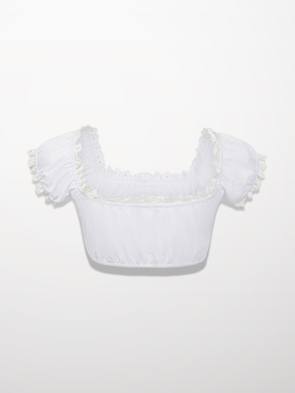 Weiß Schulterfreier Ausschnitt Kurzarm Damen Dirndlblusen Tania( Kaufe ein Dirndl und erhalte diese Dirndlbluse kostenlos dazu )