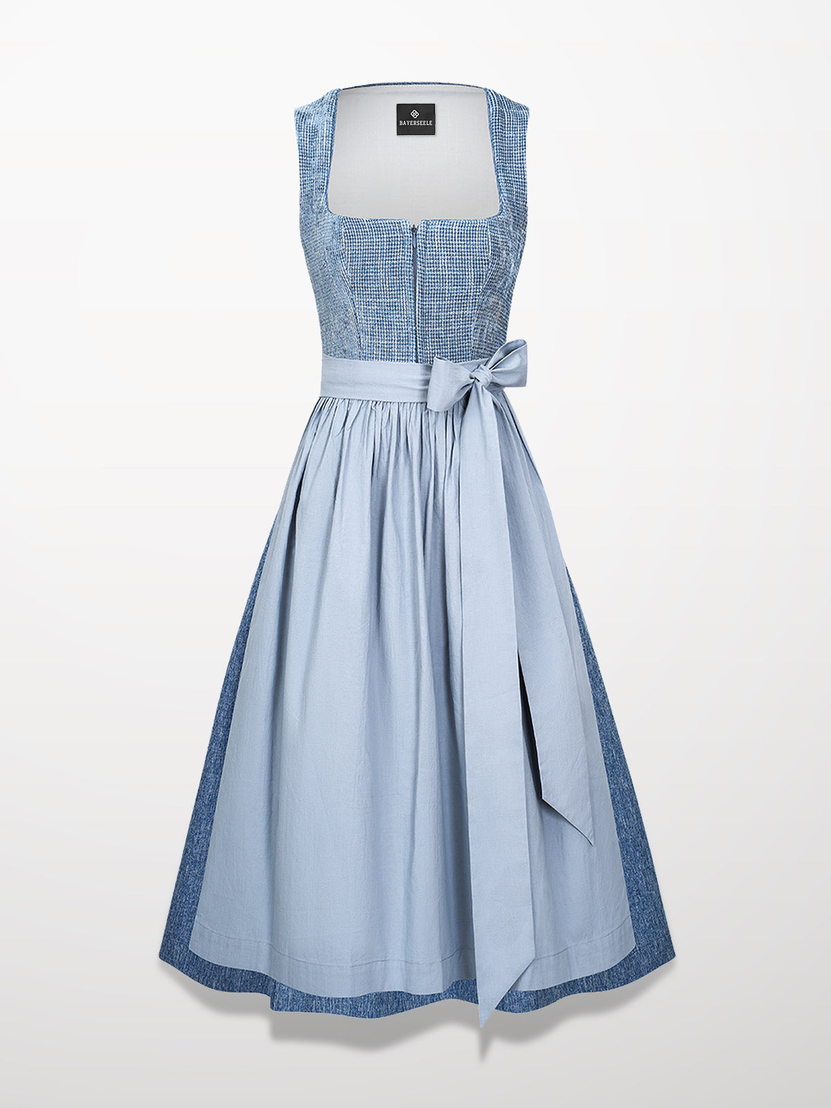 Damen Blau Reißverschluss Vorne Dirndl Caroline