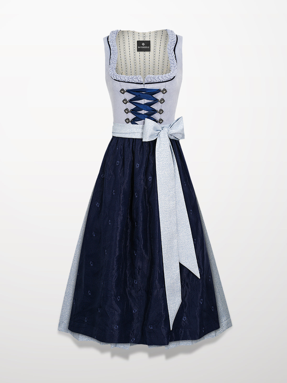 Damen Blau Reißverschluss Vorne Strukturierter Dirndl Leonie