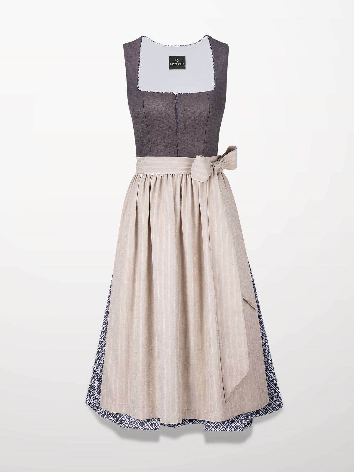 Damen Grau Gerader Ausschnitt Geometrische Muster Dirndl Maxima