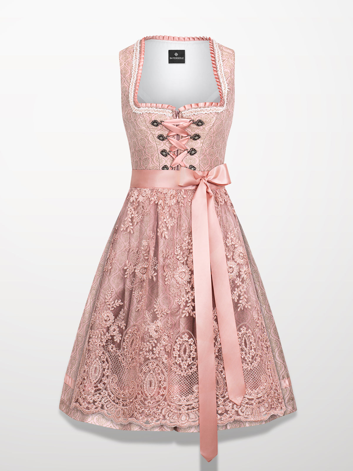 Damen Rosa Reißverschluss Vorne Allover Muster Dirndl Adele