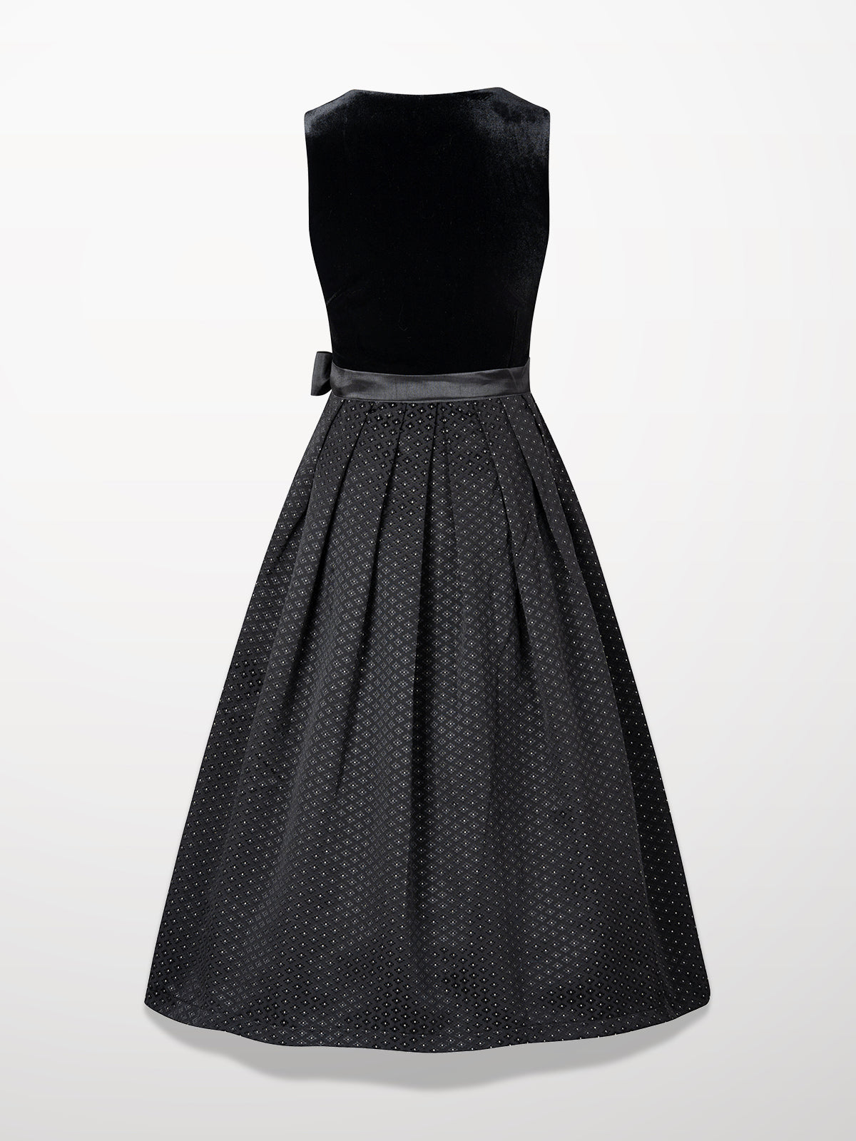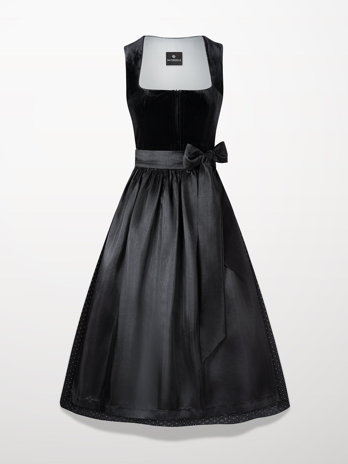 Damen Schwarz Reißverschluss Vorne Strukturierter Dirndl Delia