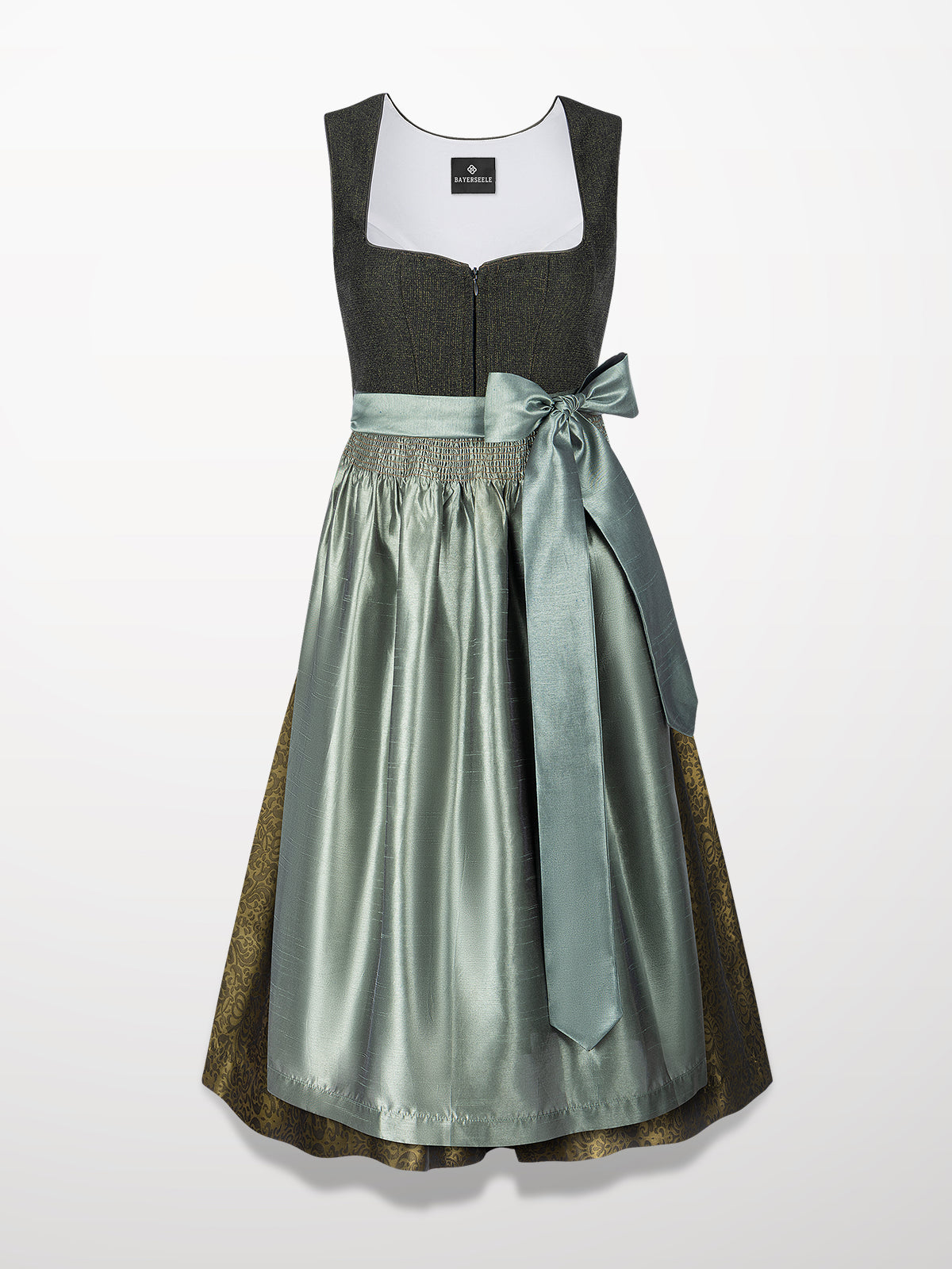 Damen Grün Herz-Ausschnitt Strukturierter Dirndl Dora