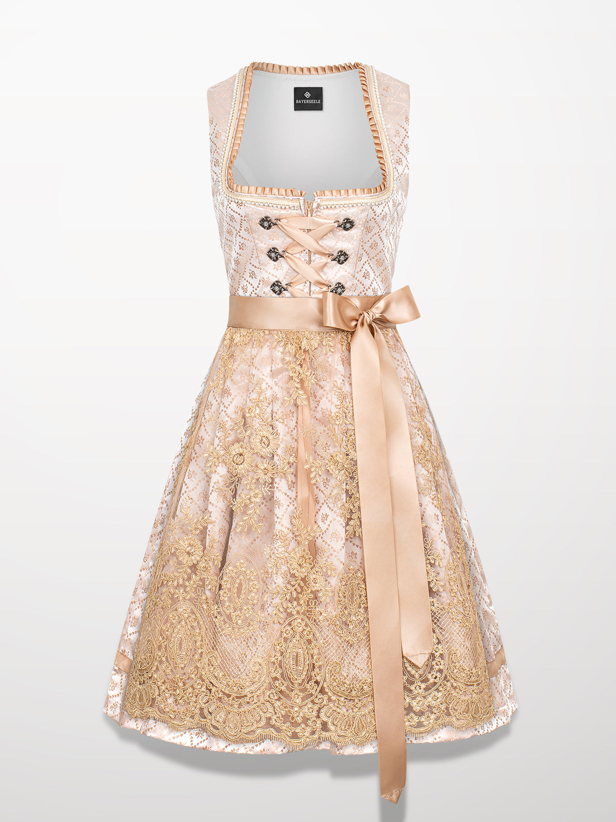 Damen Gelb Reißverschluss Vorne Allover Muster Dirndl Elana
