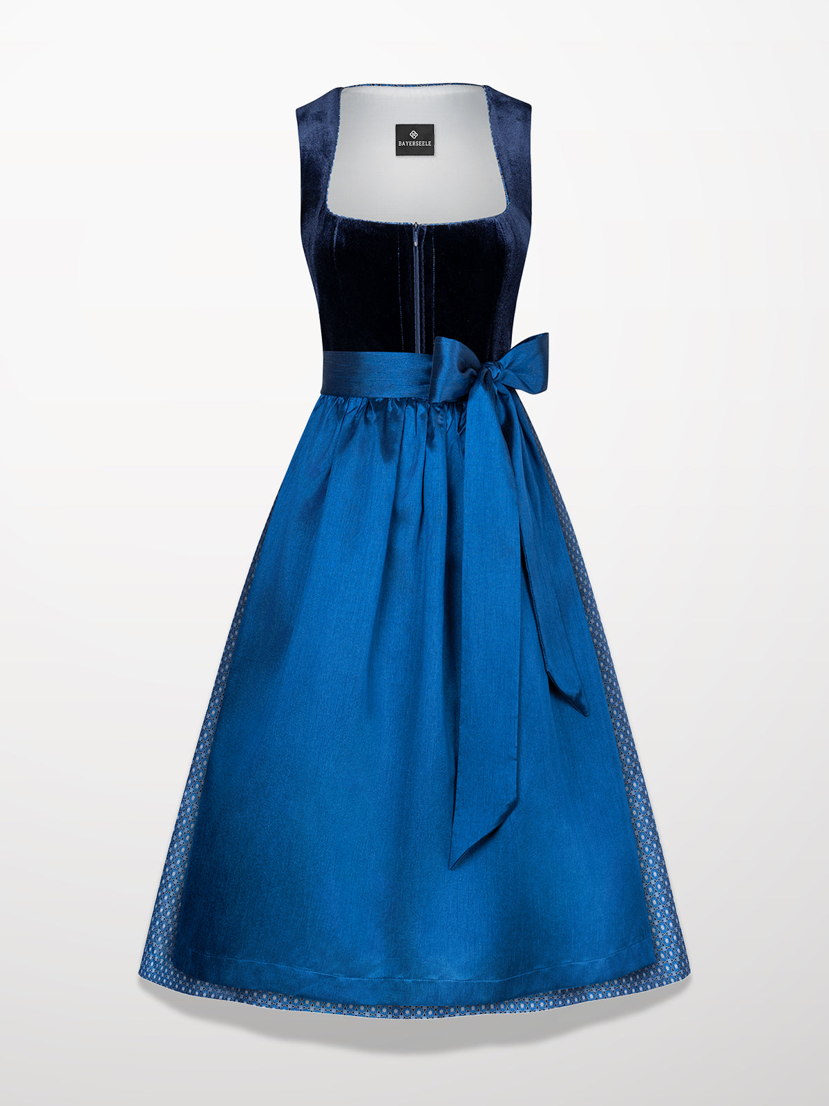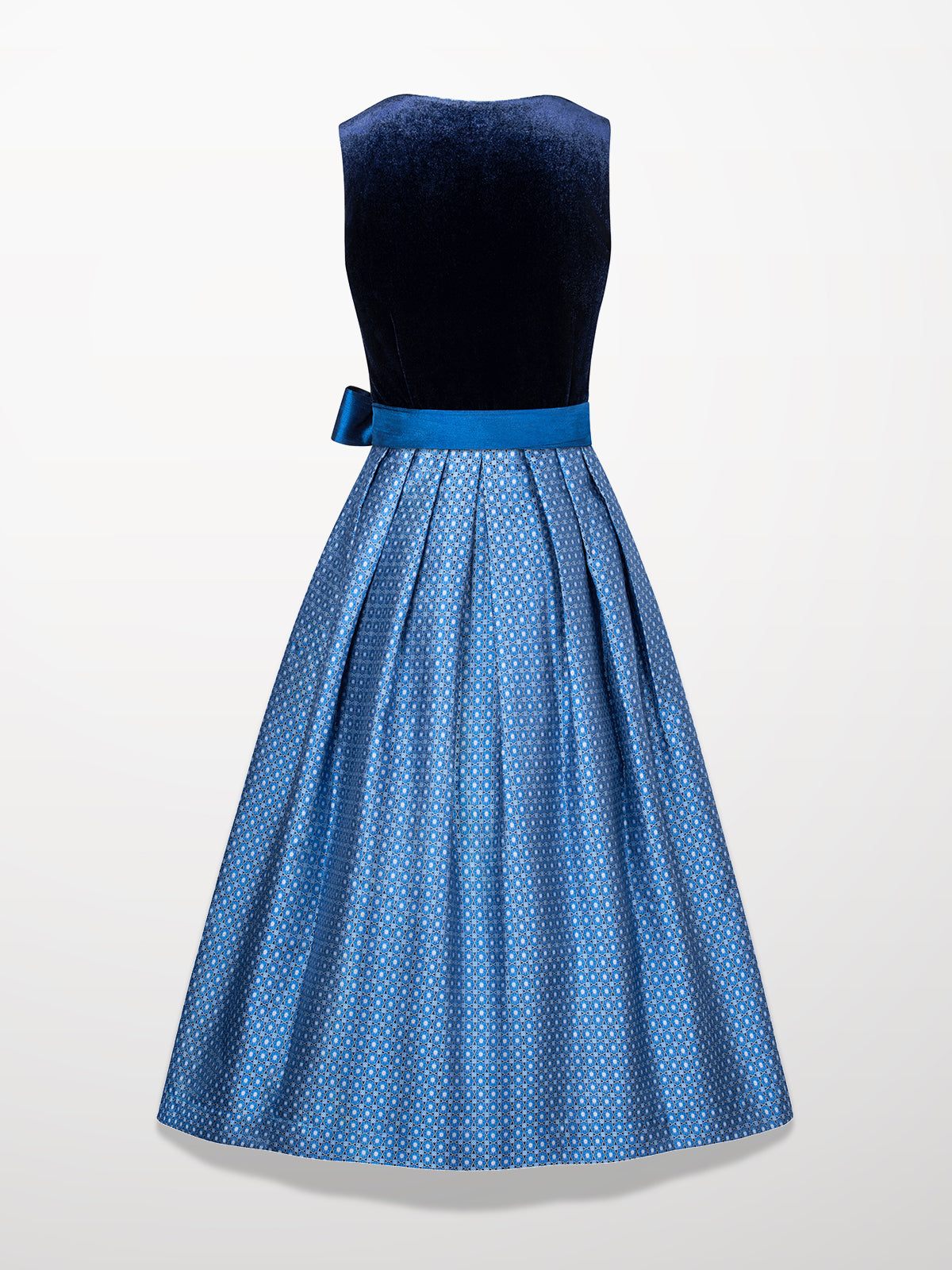Damen Blau Reißverschluss Vorne Strukturierter Dirndl Leonie