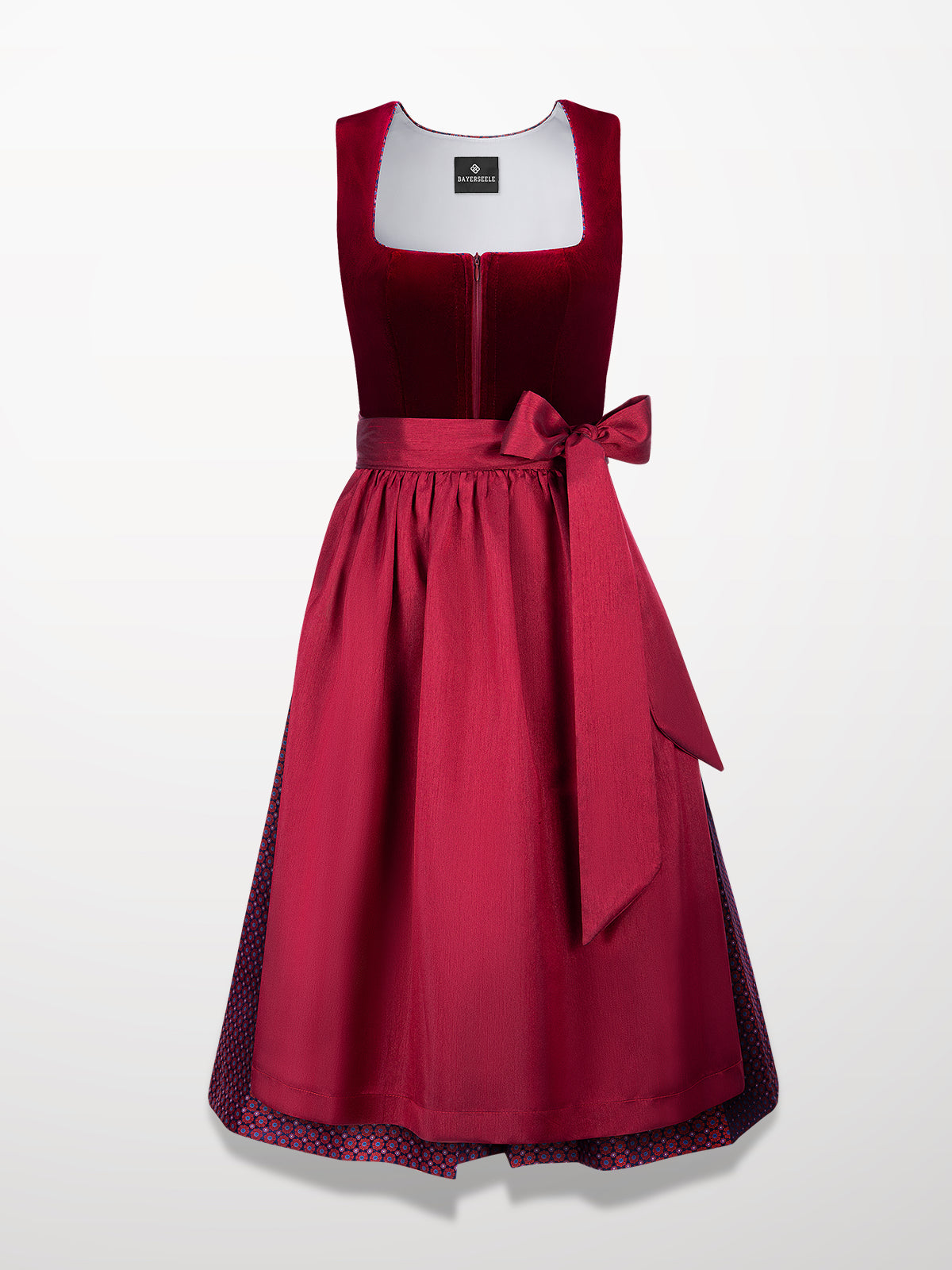 Damen Rot Gerader Ausschnitt Strukturierter Dirndl Massia