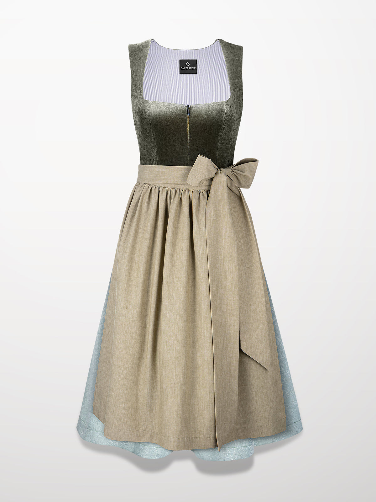 Damen Grün Gerader Ausschnitt Dirndl Watt