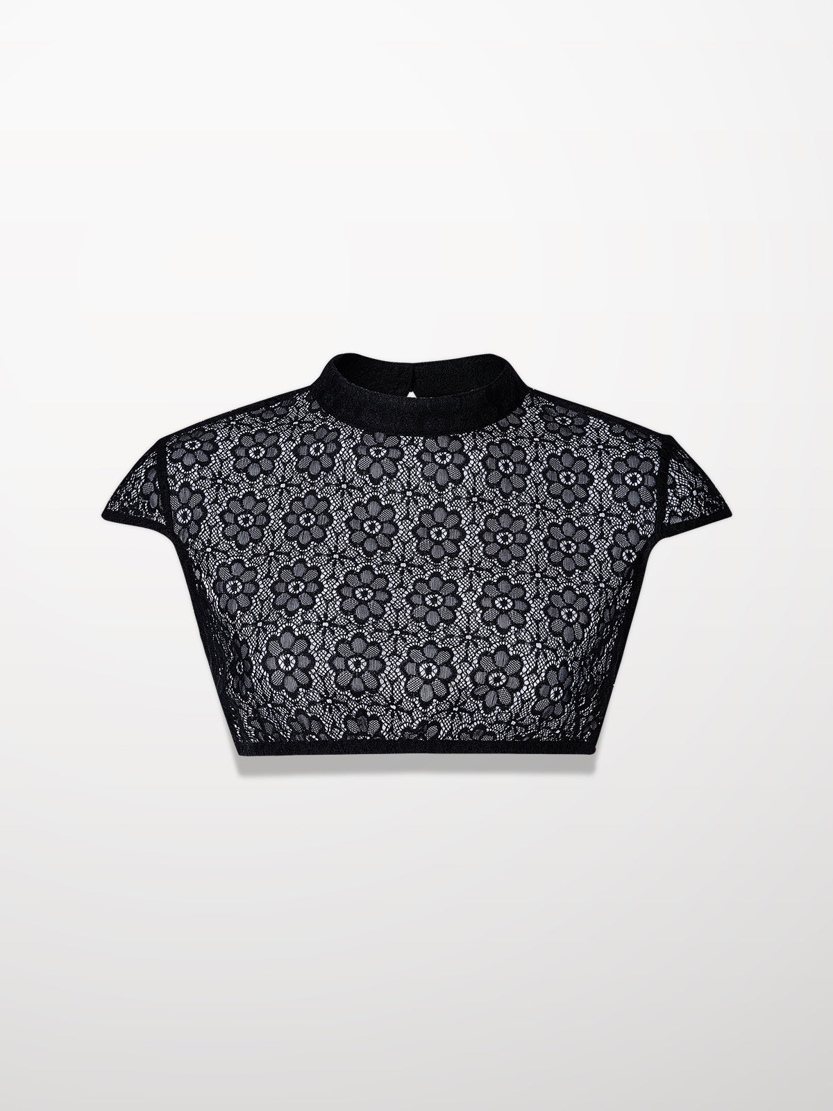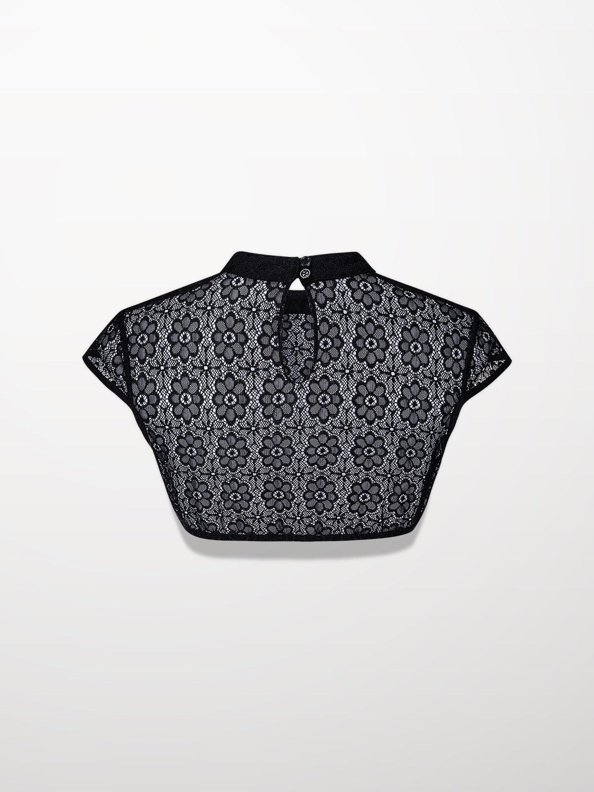 Damen Kurzarm Hochgeschlossen Schwarz Dirndlblusen Eudora